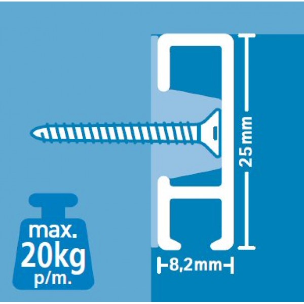 | Méret | - 200 vagy 300 centiméter hosszú - 25 milliméter magas - 8,2 milliméter széles |
