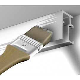 - A mennyezet alá (tetszőleges magasságba) egy esztétikus alumínium galériasín kerül, melynek speciális alkatrészei biztosítják a vízszintes és függőleges mozgatást.